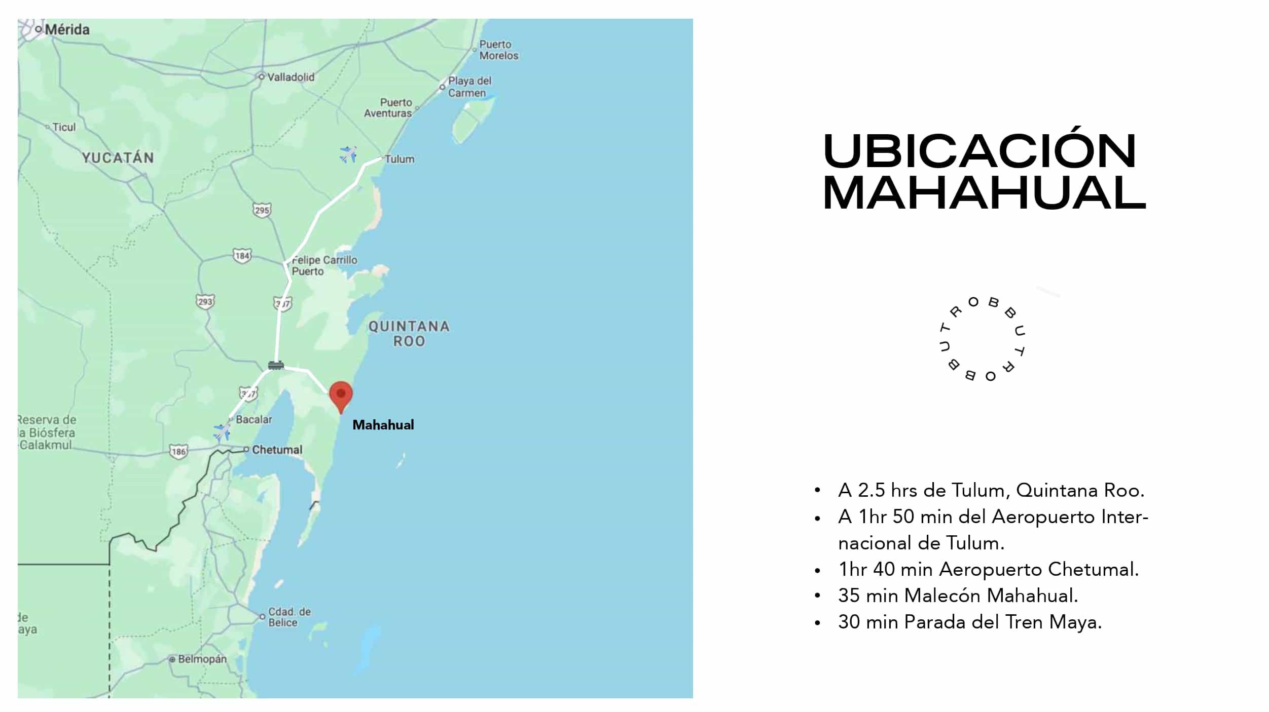 - Ubicación Privilegiada: A solo 35 min del Malecón de Mahahual, 30 min del Tren Maya y menos de 2 horas del Aeropuerto Internacional de Tulum.