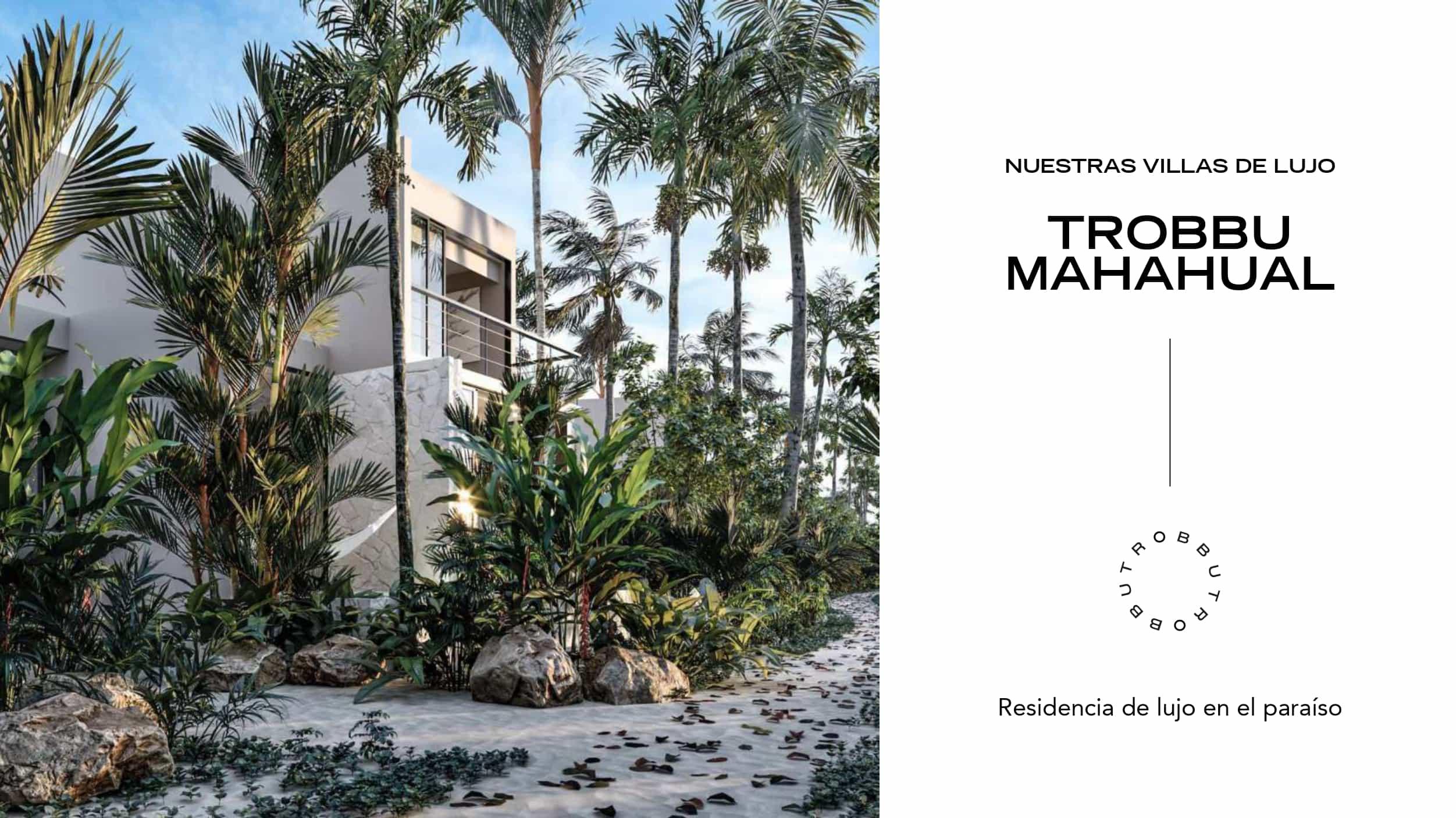 Descubre TROBBU Mahahual, un exclusivo desarrollo de 12 villas frente al Caribe Mexicano, con beach club privado, infinity pool y acceso directo a las playas más paradisíacas de la Costa Maya. Disfruta tu villa cada año o genera ingresos dolarizados con nuestro Pool de Rentas. Además, gracias a nuestra Filosofía 80/20, podrás viajar a otros destinos TROBBU en México y Europa al puro costo de mantenimiento.
