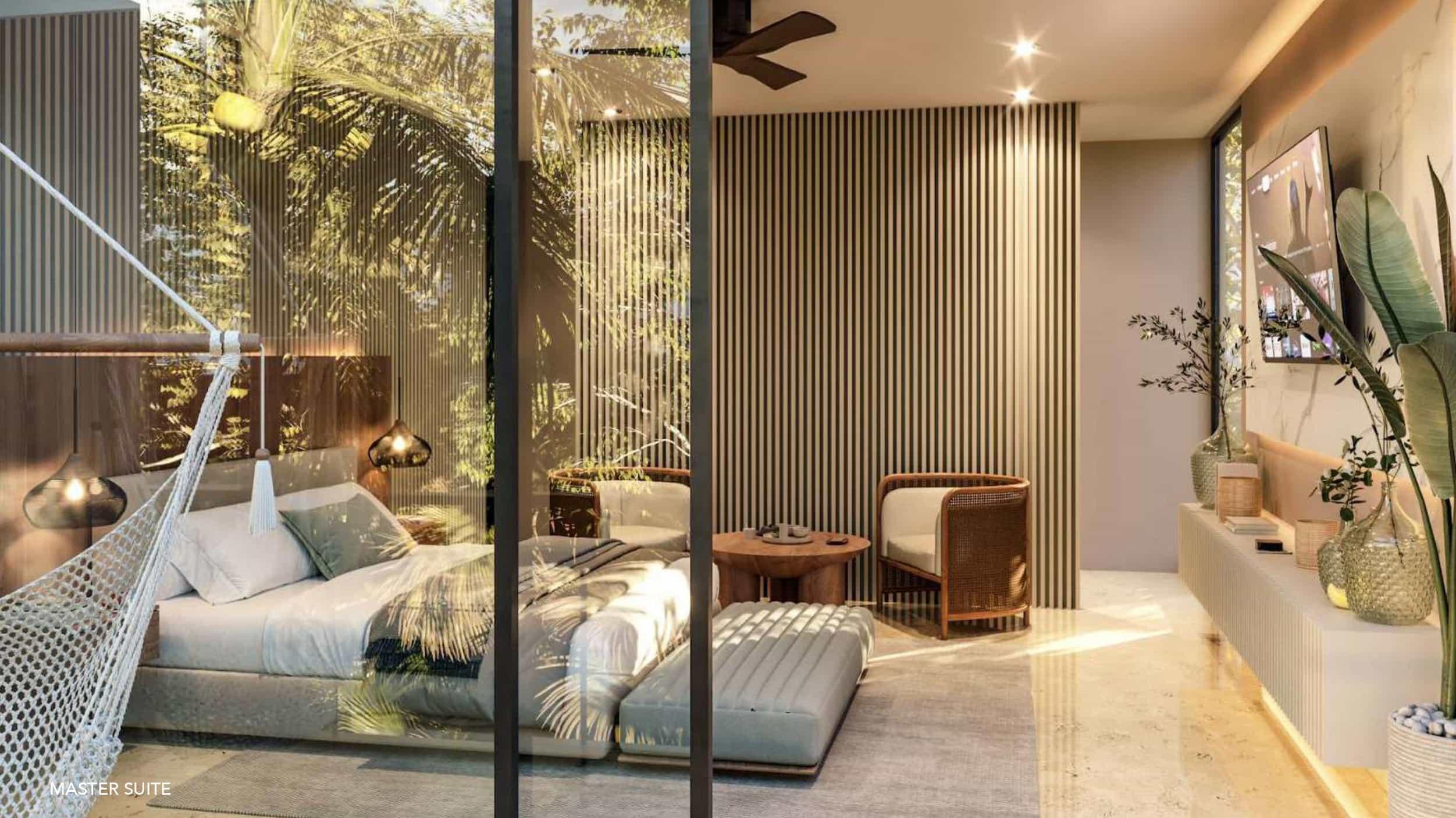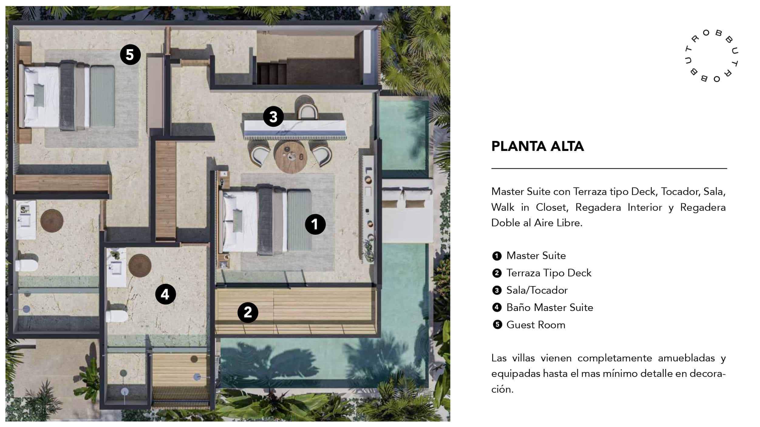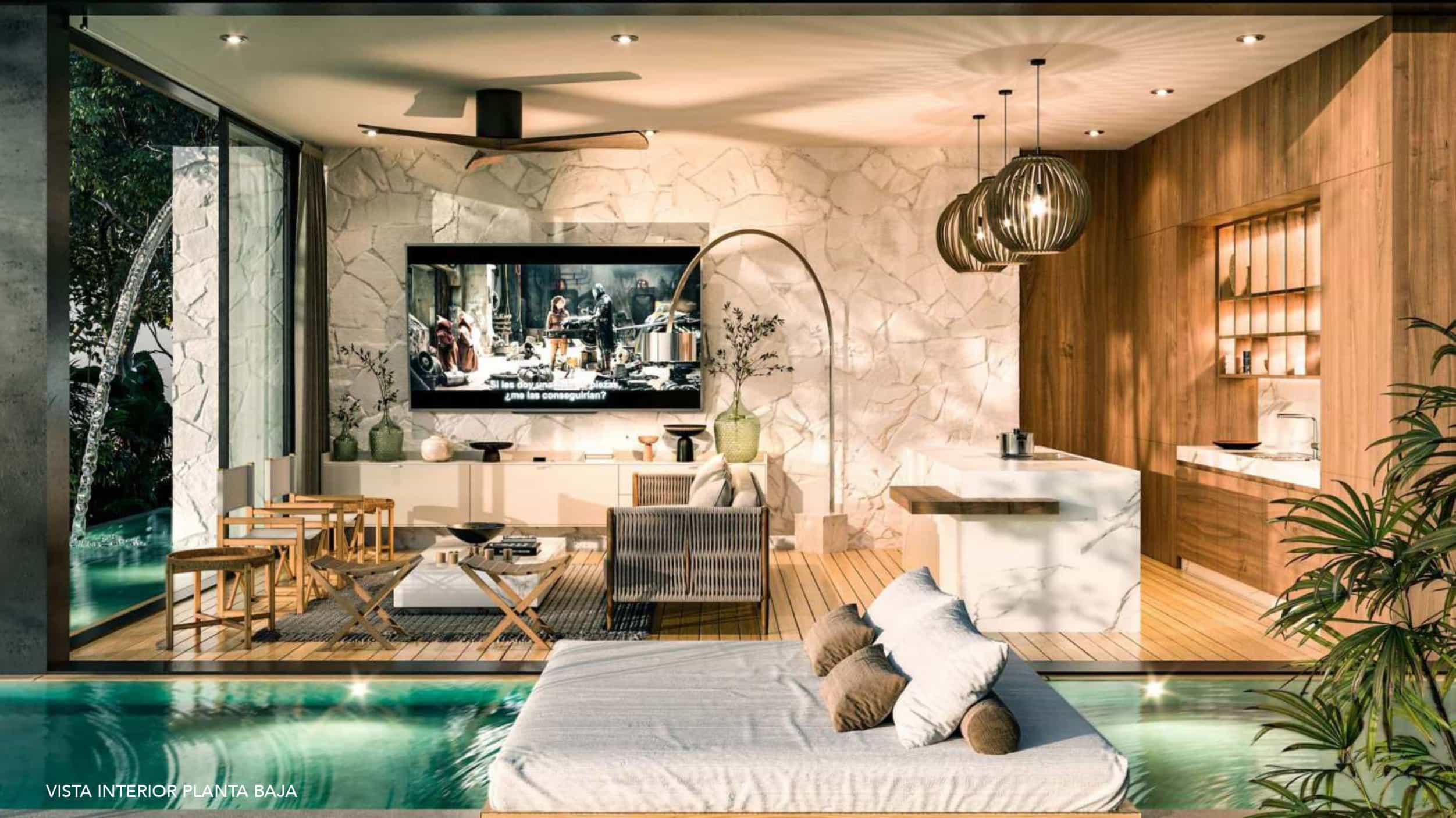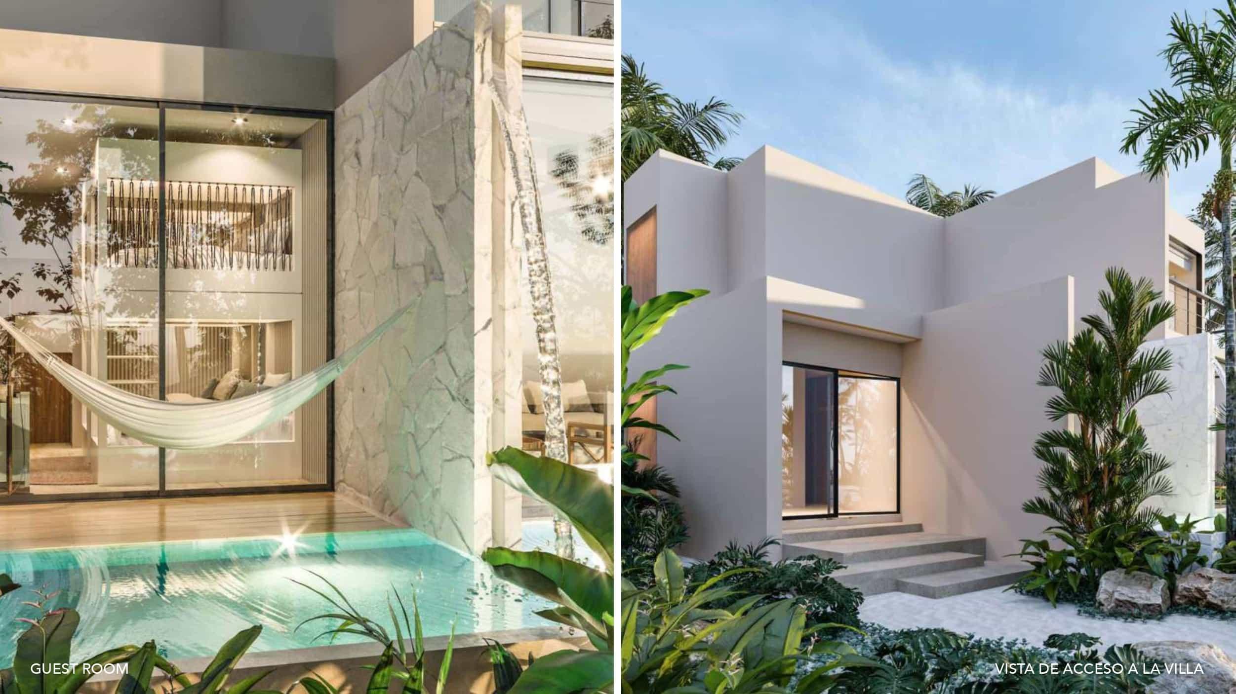 - Villas de Alta Gama: 2 plantas, master suite con terraza, recámara de visitas, cocina open layout, sala indoor-outdoor y acabados premium.