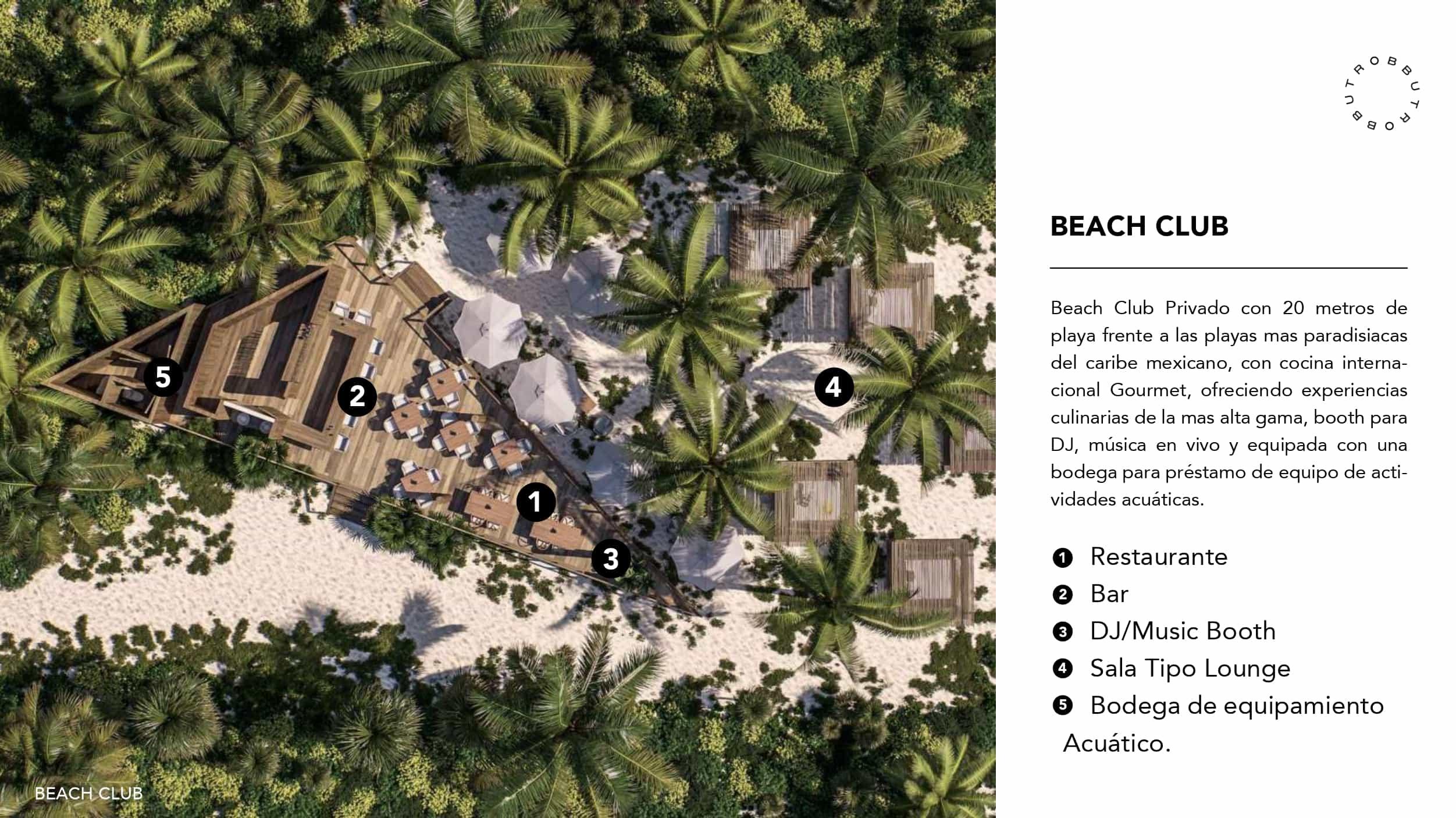 - Amenidades Exclusivas: Beach Club privado con restaurante gourmet, DJ booth, música en vivo y bodega para actividades acuáticas.