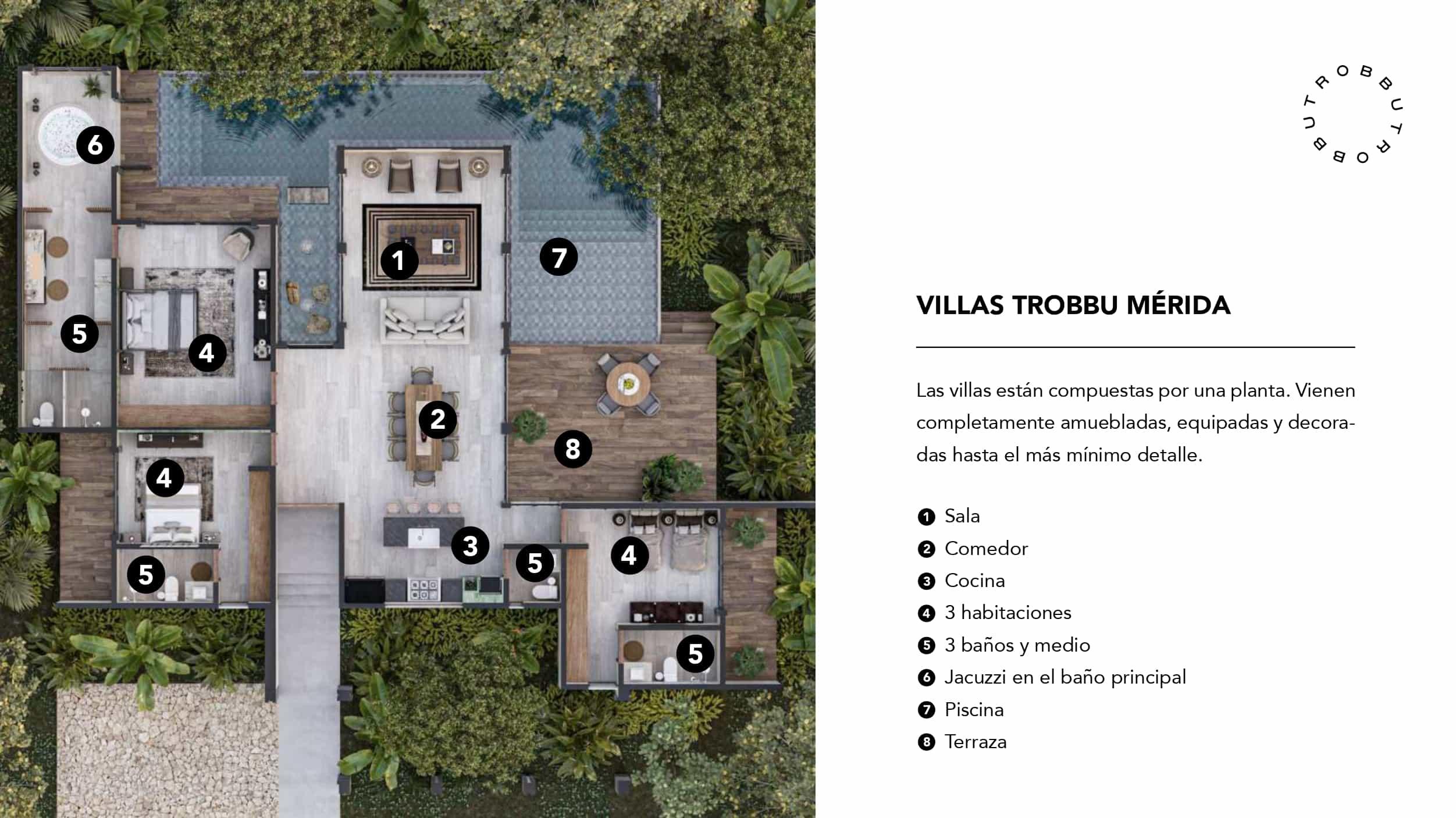 Descubre TROBBU Mérida, un exclusivo desarrollo con 24 residencias premium en una de las zonas más exclusivas y con mayor crecimiento de Yucatán. Vive el lujo y la tranquilidad del sur de México disfrutando tu residencia cada año o generando ingresos constantes con nuestro Pool de Rentas. Además, gracias a nuestra Filosofía 80/20, podrás viajar a otros destinos TROBBU en México y Europa al puro costo de mantenimiento.